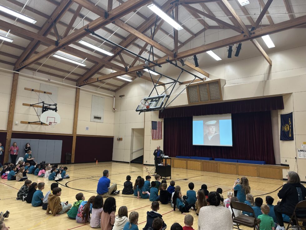 On November 7th I had the honor of attending Mt. Scott Elementary’s Veterans Day Assembly. Students in kindergarten through fifth grade filtered into the school’s gymnasium and sat in rows according to their grade, while family members watched on from the bleachers. After we all recited the Pledge of Allegiance, students performed their morning song, and each class shared a rousing chant about their grade I was invited to the front by Principal Jeff Green.