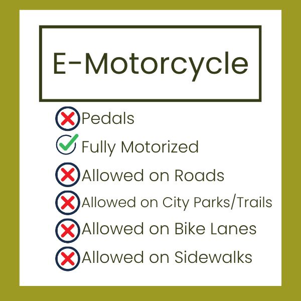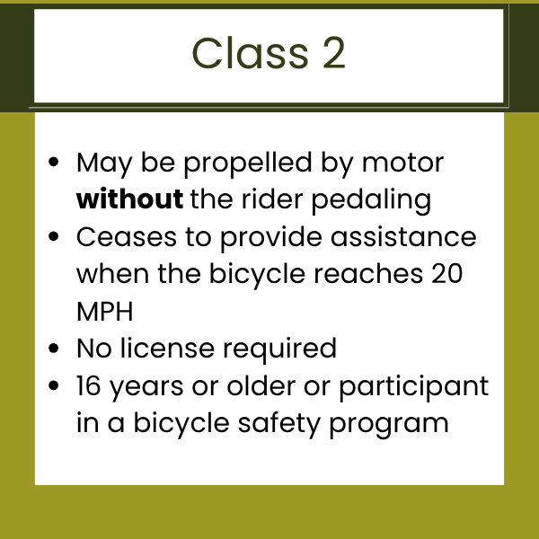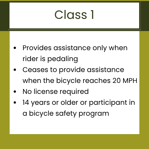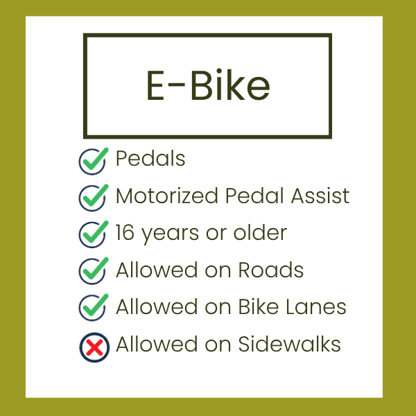 A recent legislative change has updated age requirements for e-bike use; however, the new law will not take effect until January 2027. At this time, the city continues to follow the current minimum age requirement of 16.