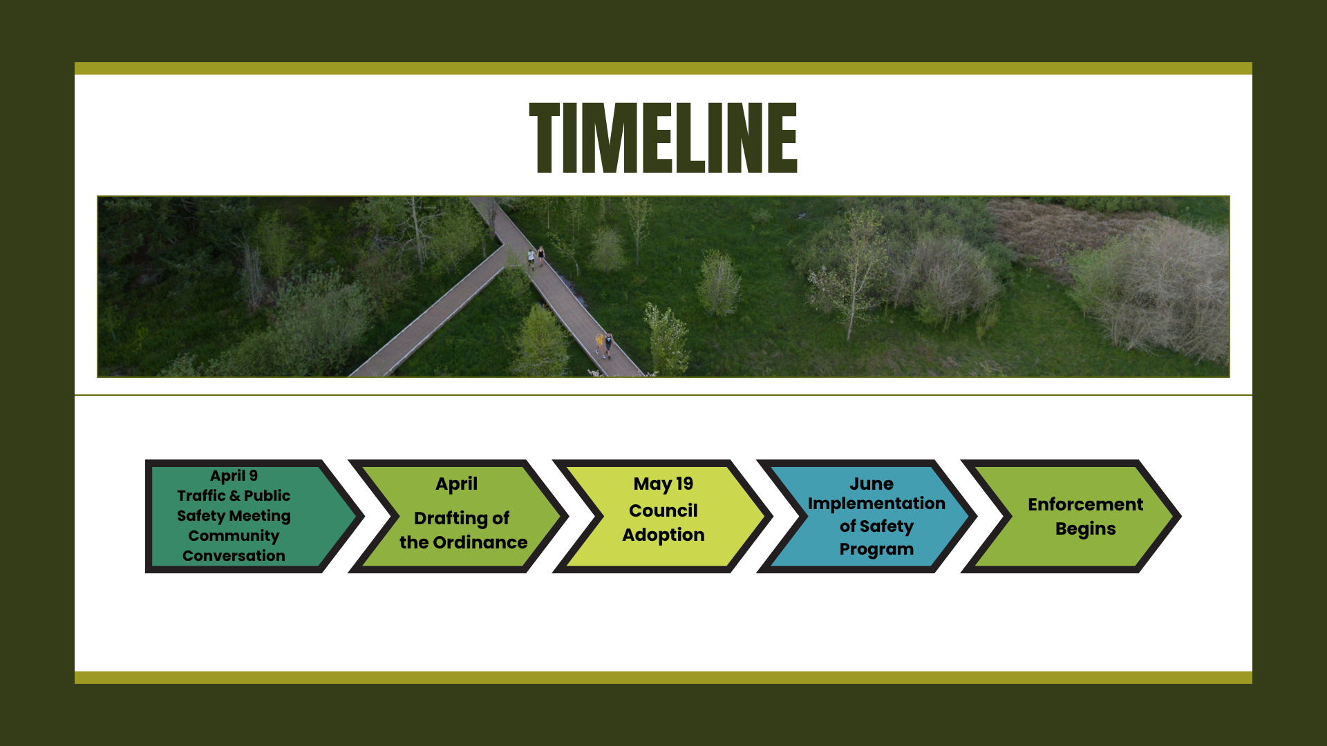 The community broadly supported a combination of solutions, including new local regulations focused on unsafe riding behavior, expanded education and safety programs especially for youth and parents and potential restrictions on where devices can be used, such as trails and boardwalks. Overall, the discussion highlighted the need for a balanced, community-driven approach that improves safety while still allowing for responsible use.