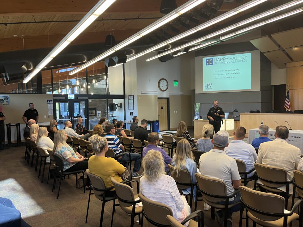 The Happy Valley Business Alliance (HVBA) is a community-centric organization that supports and connects Happy Valley business owners and brings attention to their businesses, attractions, and upcoming special events. General meetings occur on the fourth Wednesday of every month and are held at Happy Valley City Hall from 7:30 a.m.-9 a.m. The Happy Valley Police Chief or another Public Safety Team representative will attend and provide important information pertaining to local business. Topics addressed might include a report on recent crime trends, resources available to business owners to prevent break-ins, or opportunities for business owners to partner on an upcoming law enforcement event. Learn more about the HVBA.